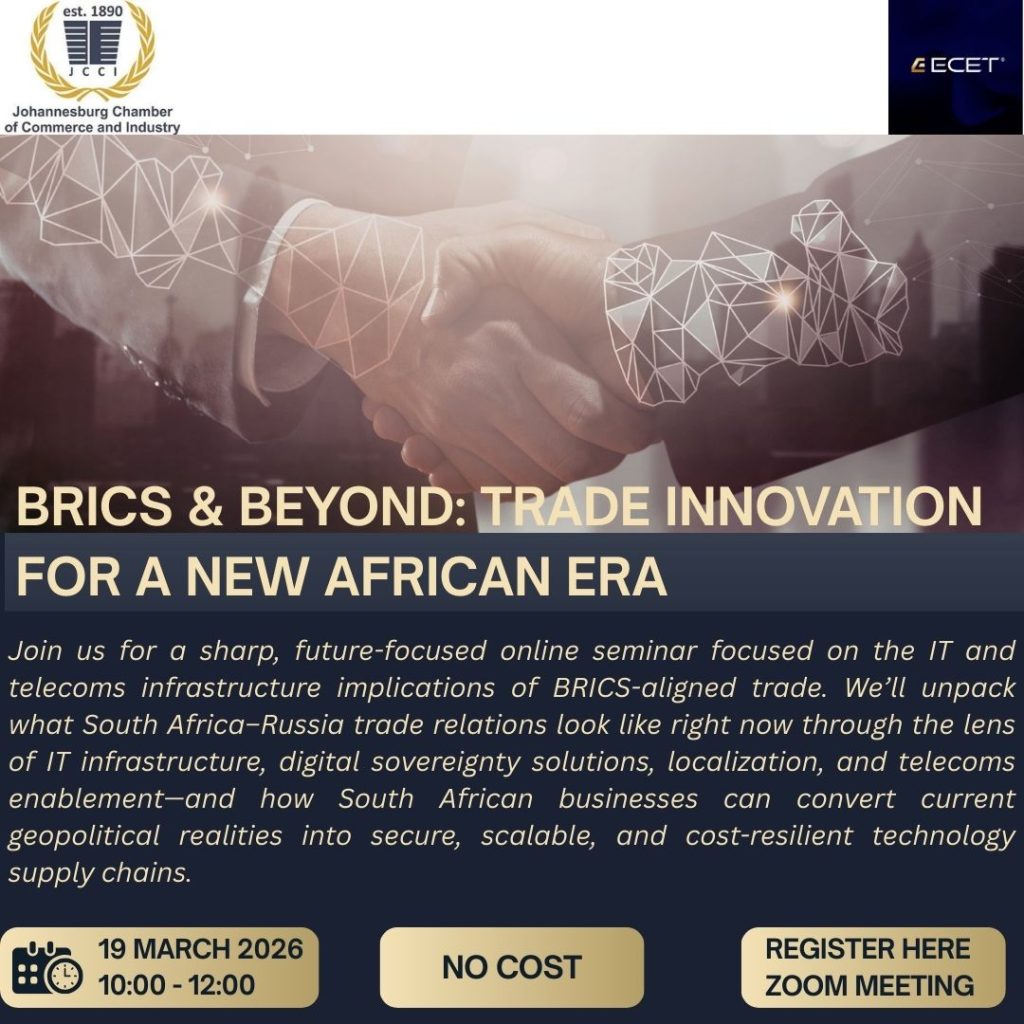 BRICS & Beyond: Trade Innovation for a New African Era By JCCI AdminMarch 19, 2026 When March 19, 2026 10:00 am Add To Calendar Download ICS Google Calendar iCalendar Office 365 Outlook Live Event Type Events Upcoming Events Share
